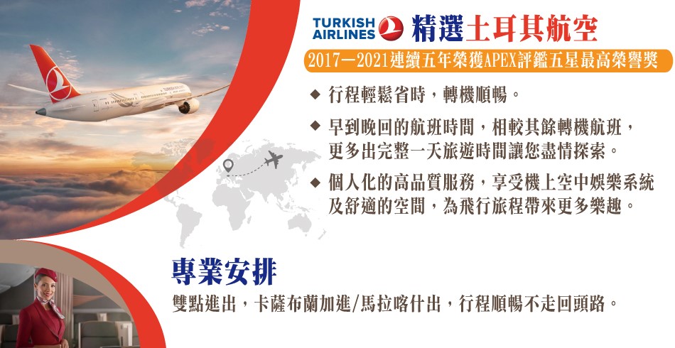 搭乘土耳其航空出發,在伊斯坦堡轉乘飛往摩洛哥的名城卡薩布蘭加。