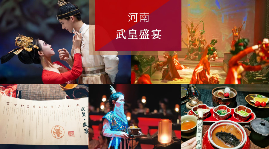 【武皇盛宴】武皇盛宴是融合宮廷禦宴、舞臺演繹、漢服文化等多種元素而打造的沉浸式體驗文化餐廳,一舞一樂看盡盛唐繁花,一杯一箸品味歷史之韻。洛陽首家沉浸式體驗文化餐廳武皇盛宴華麗啟幕,宮廷宴會的設計風格,宮廷禦宴菜式,盛唐禮制服務,宮廷樂舞演出….…一步一趨,一笑一顰,令人沉醉其中。