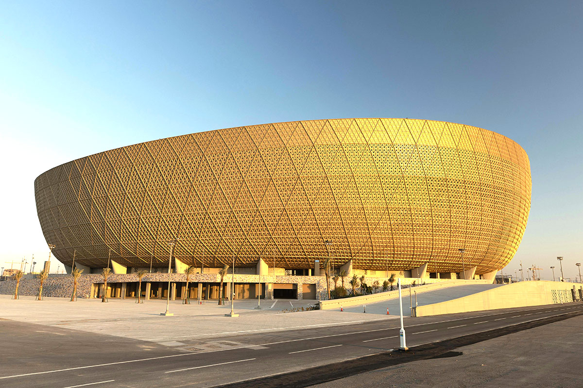 ★盧賽爾體育館外觀Lusail Stadium外觀以金色碗狀造型設計,靈感來自阿拉伯傳統器皿與燈籠,在陽光下閃耀奪目,夜晚燈光更顯壯觀。作為2022年世界盃決賽場地,體育館不僅象徵卡達的體育成就,也展現其融合傳統文化與現代建築科技的國家形象。