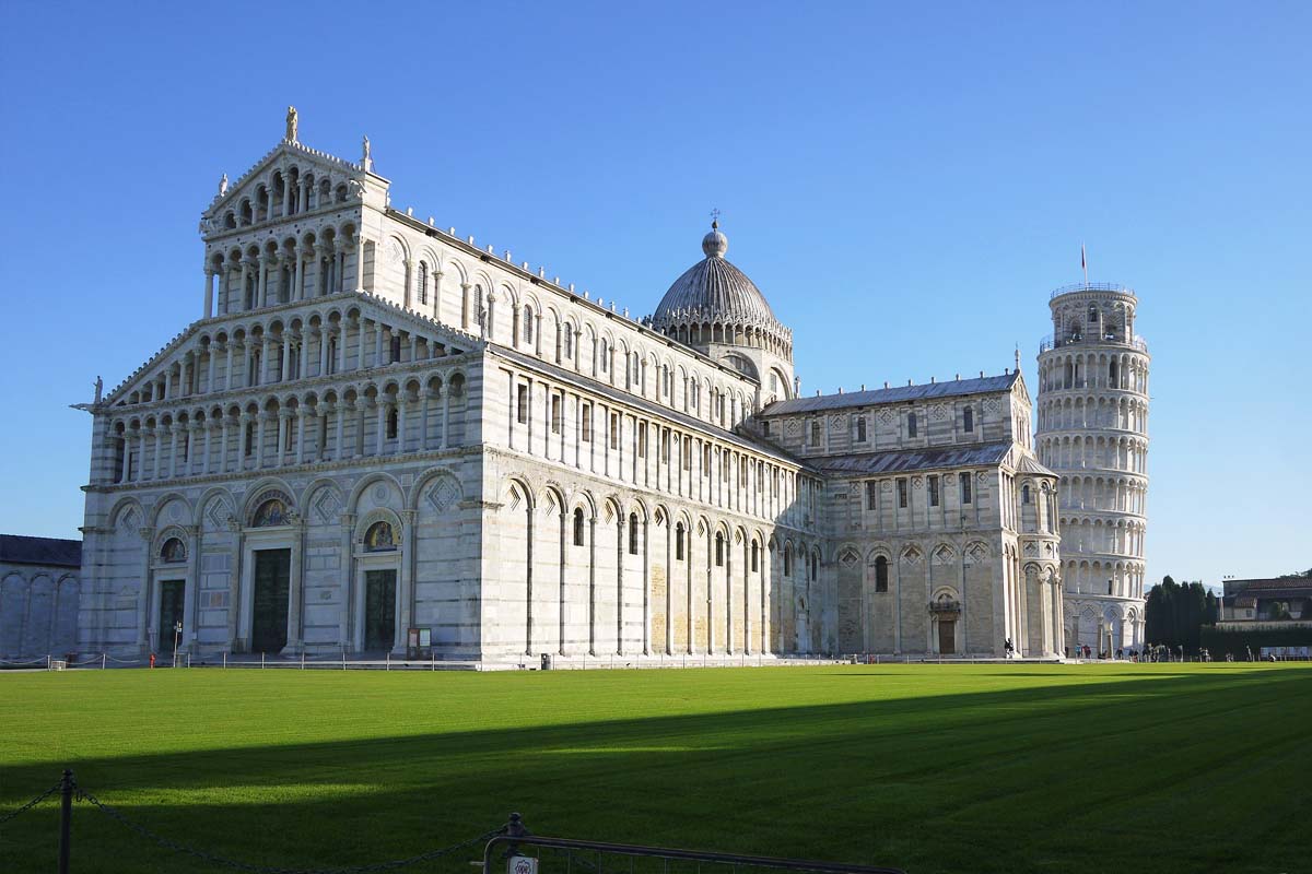 比薩在羅馬帝國時代即為重要海港,中世紀因航海路線擴張與貿易興盛,發展成為海權強國。回教世界的數學與科學傳入後,幾何原理的應用使建築技術突破限制,大量運用圓拱、長柱與迴廊等建築元素,形成獨具特色的比薩建築風格。來到奇蹟廣場,參觀舉世聞名的比薩斜塔,這座傾斜數百年的鐘樓究竟為何始終不倒,讓人嘖嘖稱奇。