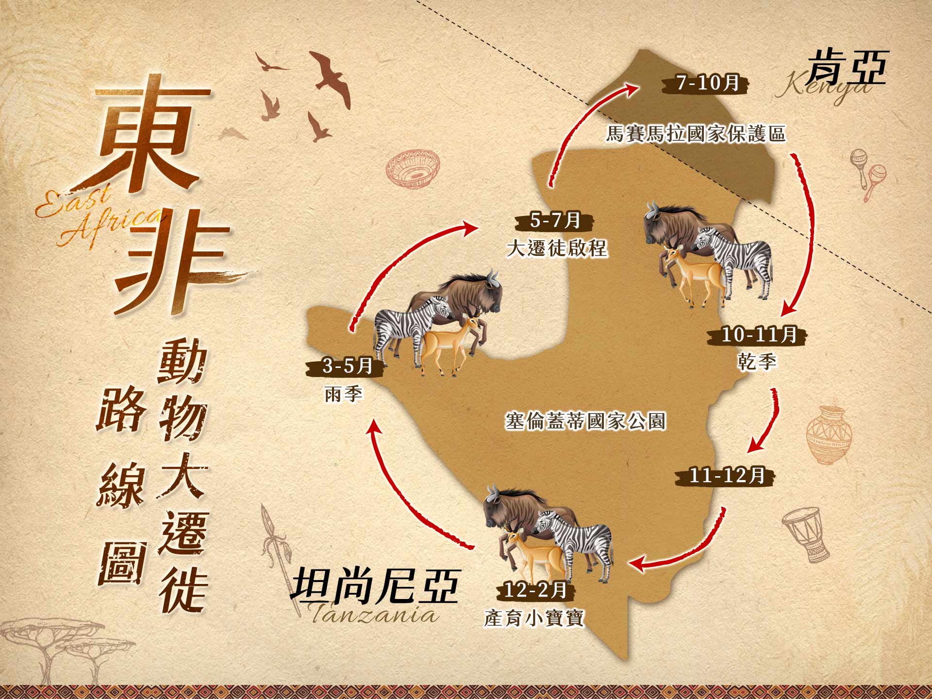 東非.肯亞~ 素有「人類起源的搖籃」之稱,一直是 Discovery 頻道及國家地理雜誌,經常報導和採訪的取景地。 在這,沒有都市區的高樓林立,令人窒息的擁擠緊繃感。肯亞-有的是一望無際的遼闊草原,舒爽宜人 的青青草香,為數最多的生態奇觀,在這個動物王國中,所有眼見的景致都呈現出壯麗的超大格局。充滿野性與原始美的東非肯亞,也是英國皇室度假首選,在這不僅擁有廣大的草原高山,還有著「東非大地塹」述說著這片大地經過時間磨練的傷疤,並醞釀出非洲大部分的湖泊,為野生動物提供絕佳棲息地。