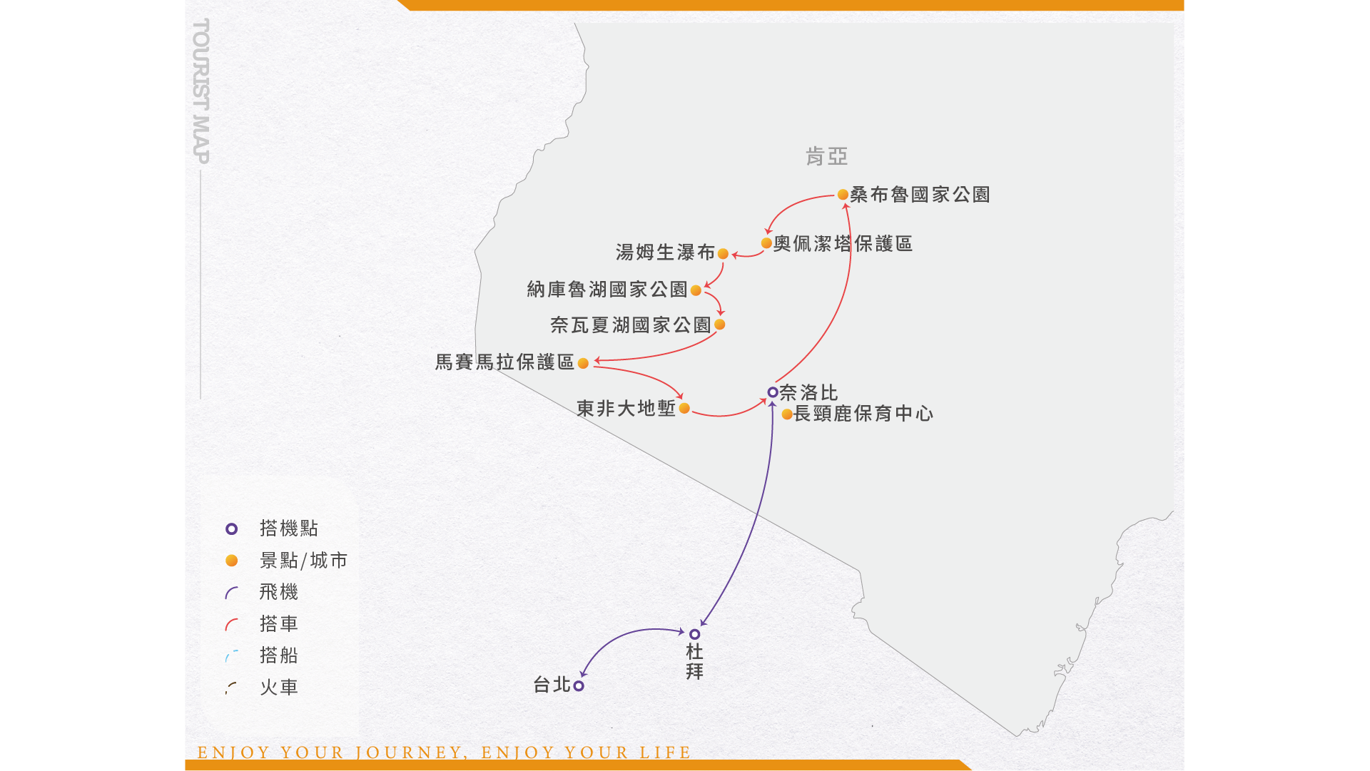 ◆肯亞行程的行車時間較長,國家公園內均為黃土路,車程中較為顛頗,不耐久坐與脊椎有傷者,請斟酌參加。