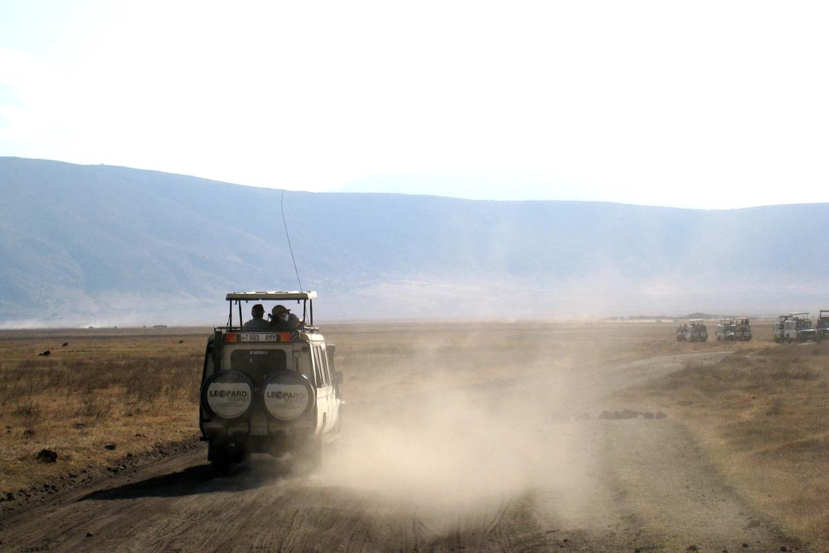 恩戈羅恩戈羅火山口Ngorongoro Crater*半日火山口遊獵-1979年,被聯合國教科文組織列為人類自然遺產。雖然整個 Ngorongoro 保護區佔地足足有 8,288 平方公里,但遊客的焦點,都集中在那面積 260 平方公里,深 600 多米的死火山口。這巨大的火山口就像活生生的生物教科書,給我們講解甚麼是生態系統,甚麼是生態平衡。大約 25,000 頭大型動物,生活在這地理上半封閉的地方。食肉動物,被吃的食草動物,被吃的草,動物的糞便肥料等等,構成一個存在了數以萬年的、自給自足的生態系統。