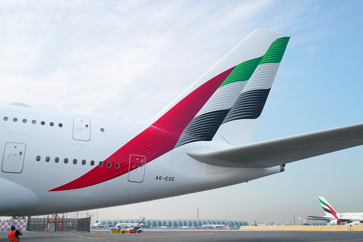 搭乘阿聯酋航空班機返抵國門。