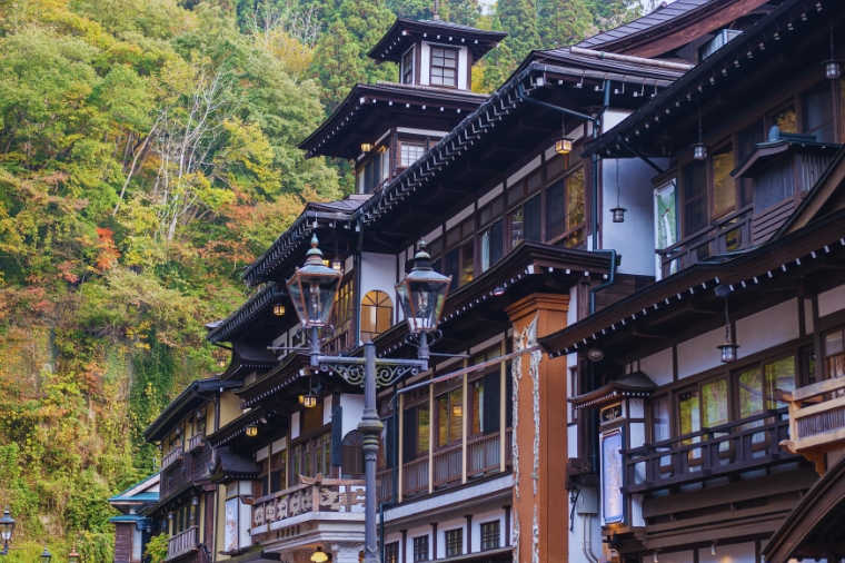 【銀山溫泉街】因銀礦產地而得名的銀山溫泉,已有400年的歷史。沿著銀山川溪谷而建,河岸兩旁保留完整大正至昭和時期的木造老式旅館、石坂道、小橋、瓦斯燈,搭配潺潺水流,氣氛寧靜,宛如世外桃源。銀山溫泉因為拍攝著名電視劇「阿信」而風糜一時,劇中是阿信母親打工的地方,阿信因為想念母親也時常來到這裡。也由於受惠「阿信」而爆紅,因此被封為是「阿信的故鄉」。巧合的是,劇中阿信母親打工的溫泉旅館「能登屋」,傳說也是宮崎駿《神隱少女》動畫中繪製的油屋所參考的藍圖。讓我們就跟著阿信的腳步,一起進入宮崎駿的童話世界。