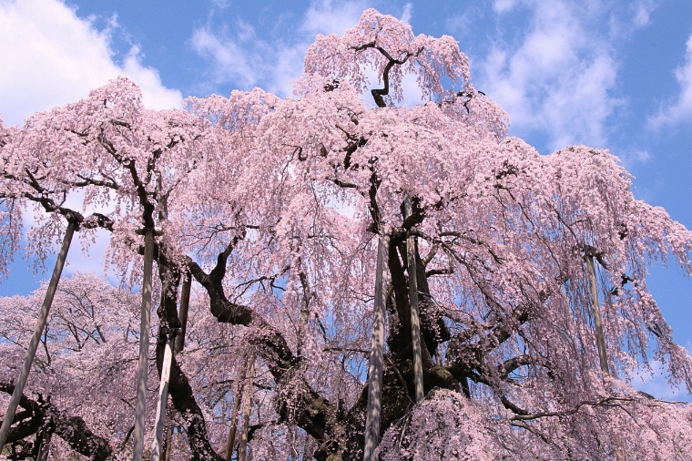 【三春瀧櫻】在一年中的多數時間,福島縣 的三春町都只是一個典型農村,當地大約有 17,000 位居民。不過,每到春天就會湧進大約 30 萬人造訪此地,爭睹三春瀧櫻的風采。瀧櫻的意思是指「瀑布櫻花」,此櫻花在盛開時精緻的粉紅花瓣會呈現絢爛的流瀑狀,而形成令人驚豔的景色,與在日本其它地區欣賞到的櫻花完全不同。