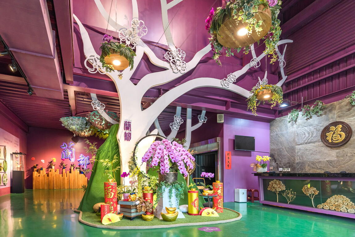 步入戶外休閒空間,一艘偌大的白色遊艇映入眼簾,為紀念創辦人早期從事遊艇製造業,如今與南瓜馬車、鞦韆、造型長椅、遊戲沙坑一同作為園區造景,草坪一側還有花朵廊道,充滿創意與童趣,是家庭好友拍照打卡的絕佳地點,為發揚臺南蘭花產業,融合生態、教育與娛樂於一身,讓遊客深入了解蘭花的種植、養護與應用。園區內展示多樣化的蘭花品種,從常見的觀賞蘭花到罕見的珍貴品種,色彩、形態各異,展現蘭花迷人魅力。展售區販售含蘭花萃取成分的保養品與清潔用品。