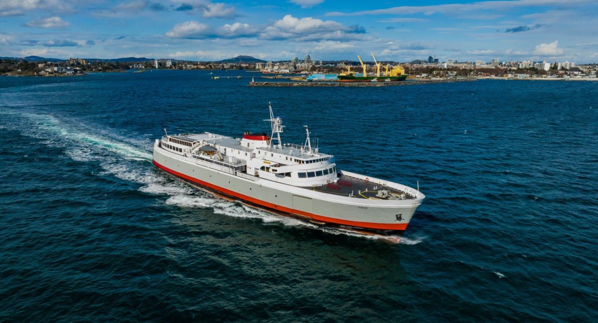 橫渡160公里長,24-32公里寬胡安德富卡海峽(Strait of Juan de Fuca),前往加拿大卑斯省的省會維多莉亞。